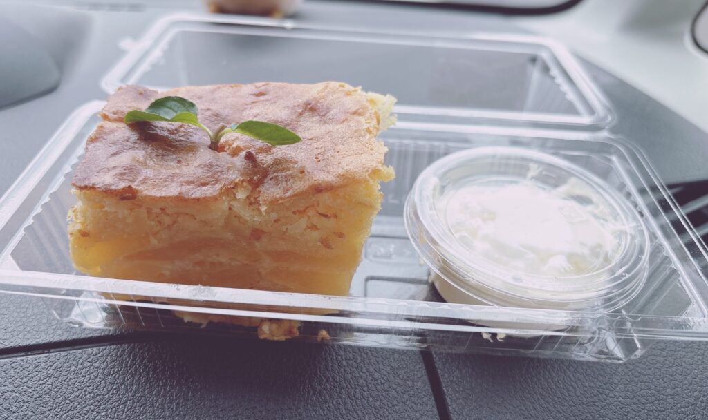 連日のご馳走でお腹いっぱいになっちゃったから、誕生日の翌日にケーキを買って、車の中で食べた。知遊堂の中にあるバリスタカフェのアップルケーキ♡
